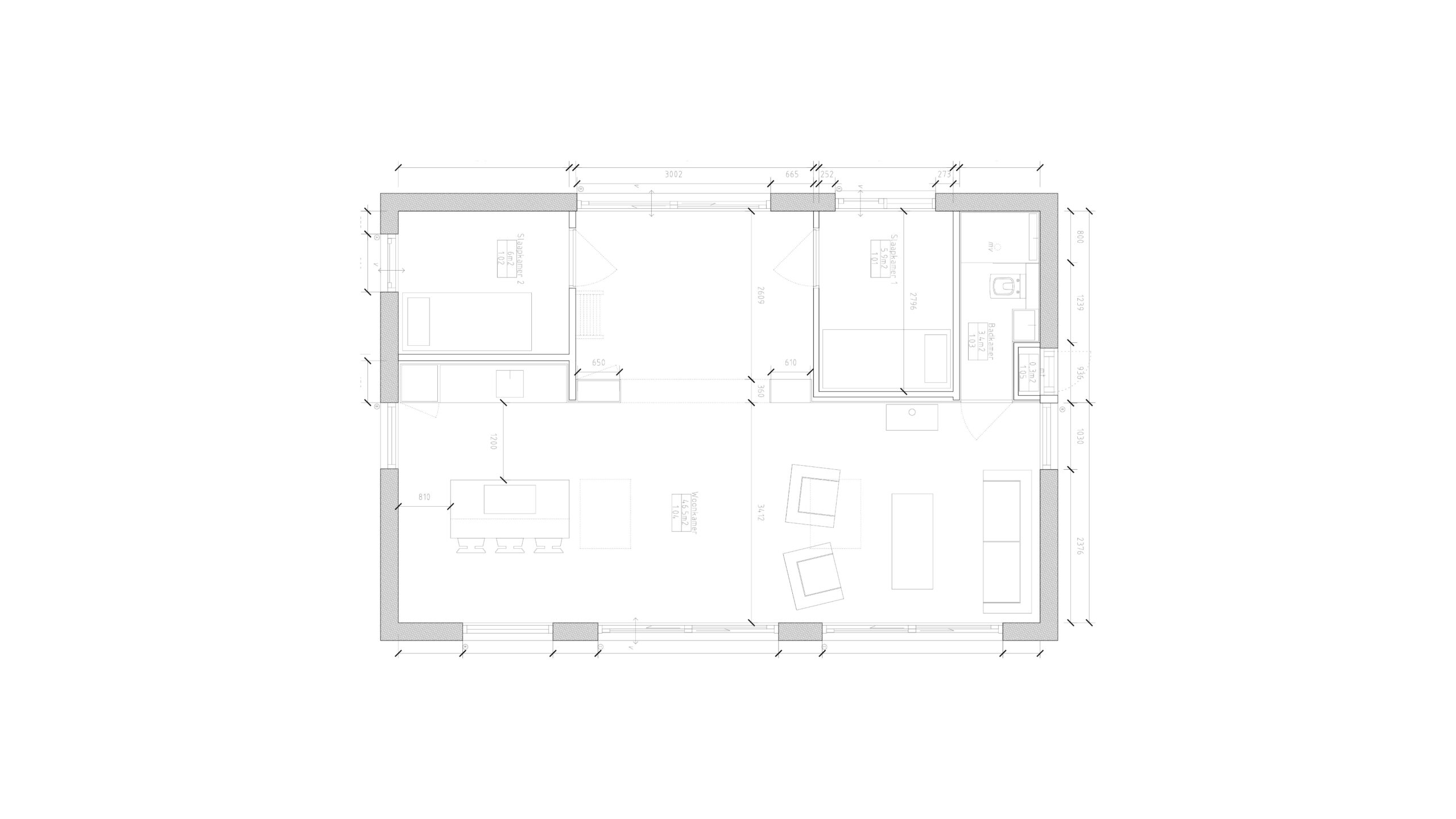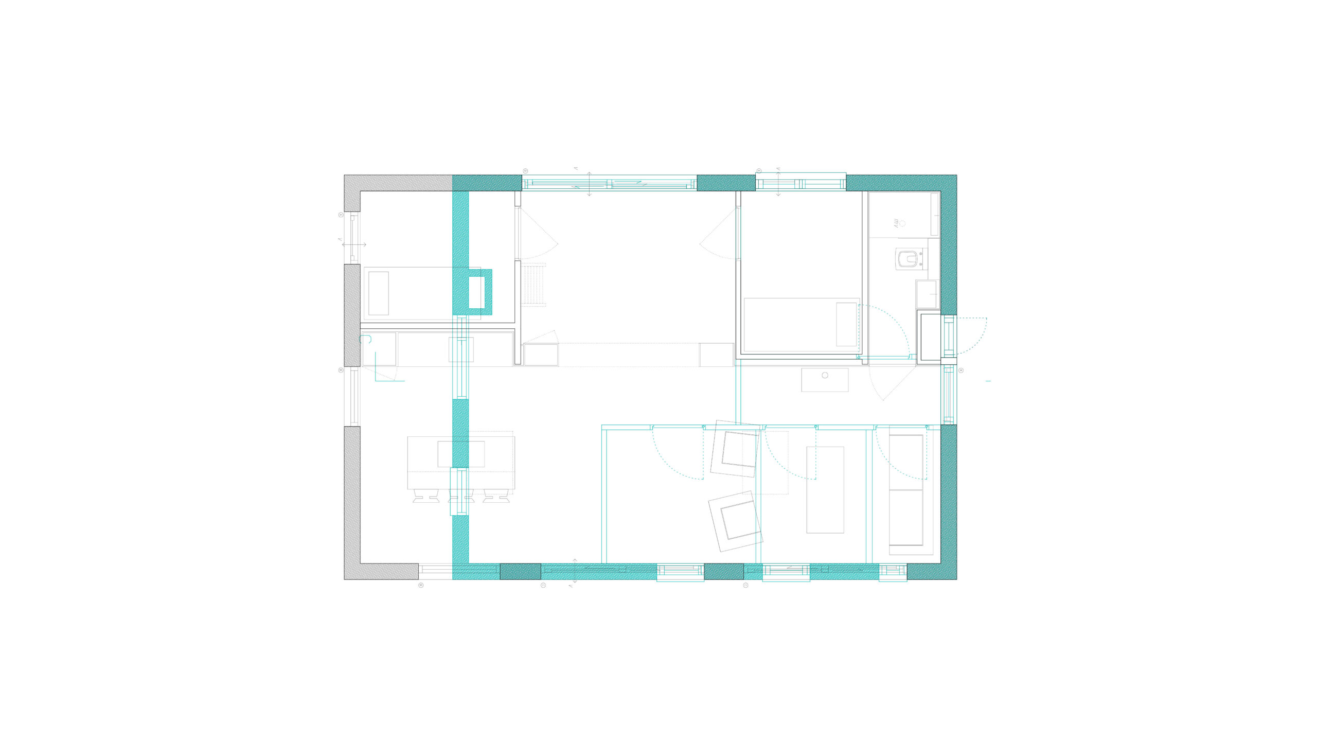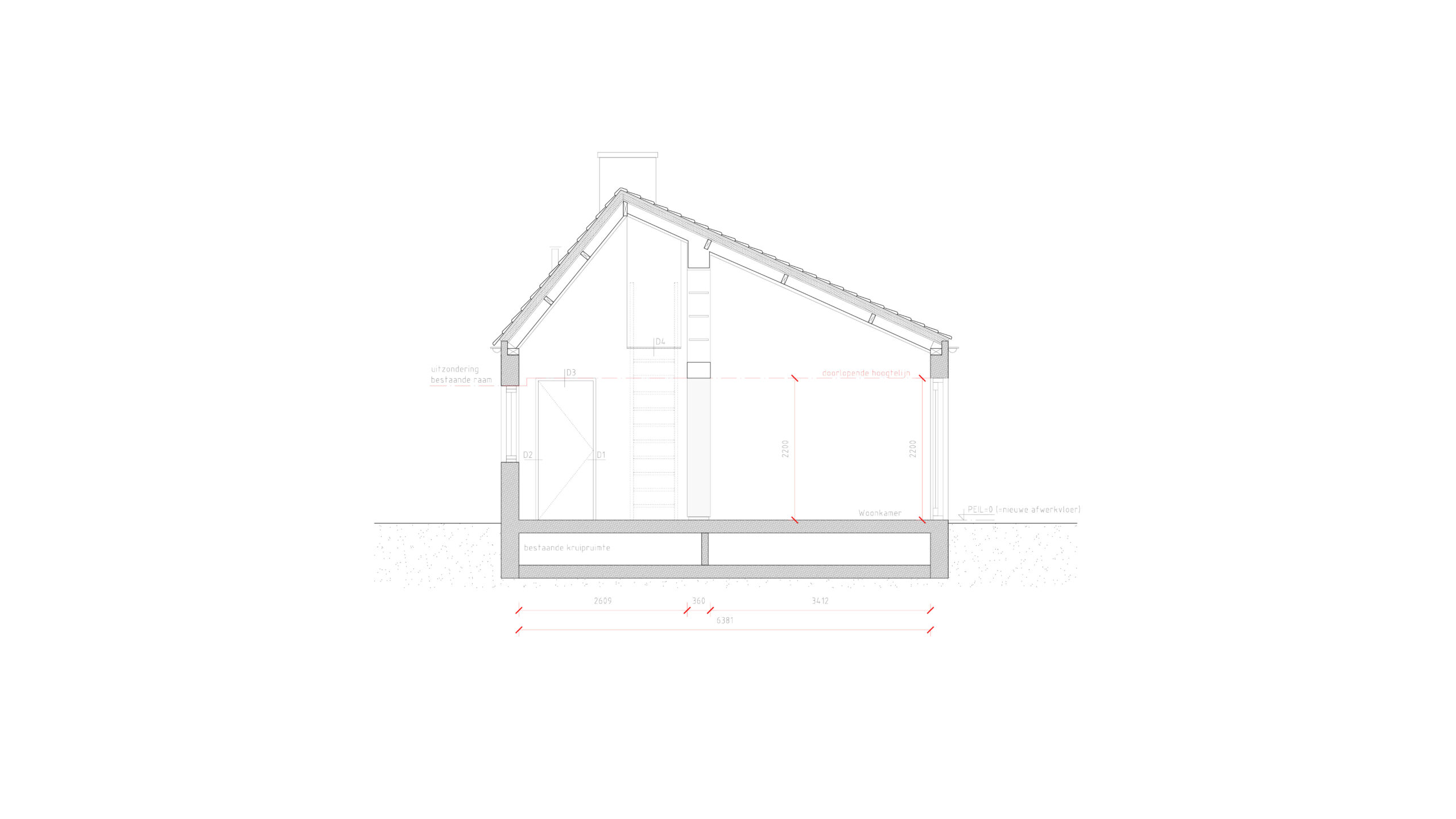 Het ontwerp bestaat uit het uitbreiden van de woning aan de korte zijde, waardoor de volume langer wordt. Het openen van de plattegrond aan de bos-zijde om ruimte te maken voor een woonvolume met uitzicht op de bossen. Verlaagde plafonds zijn verwijderd om maximaal gebruik te maken van de hoogte. De overige slaapkamers en badkamers en keukenwand zijn ondergebracht in een houten strook aan de lange wand. Deuren zijn blind opgenomen in bamboe wandbekleding en de keuken is bekleed met hetzelfde materiaal. Verder wordt er gekookt aan een keukeneiland, eveneens met uitzicht op de bossen.