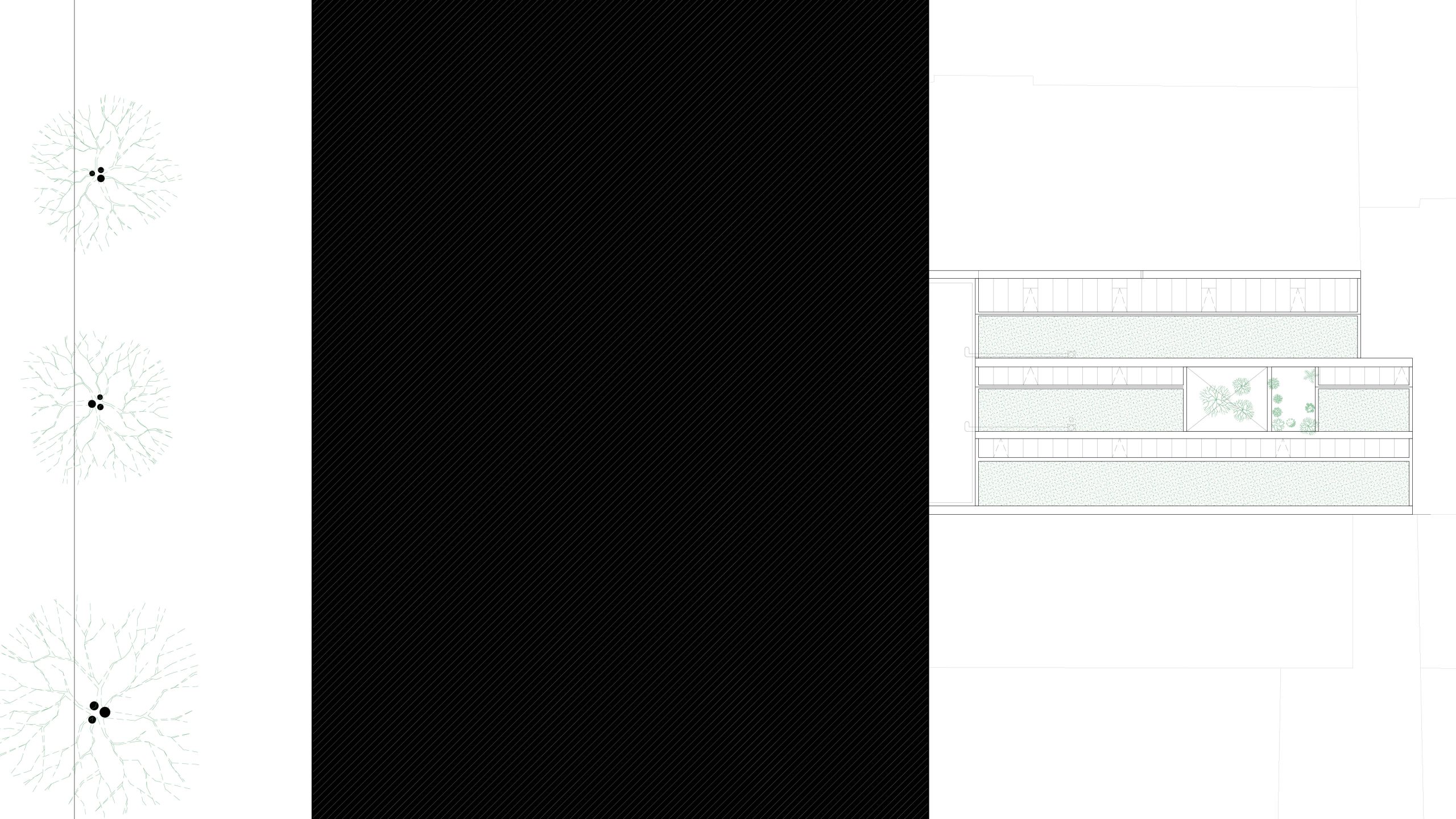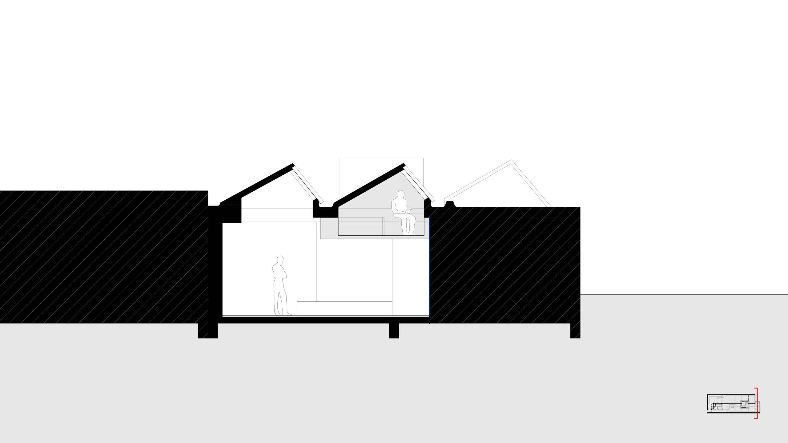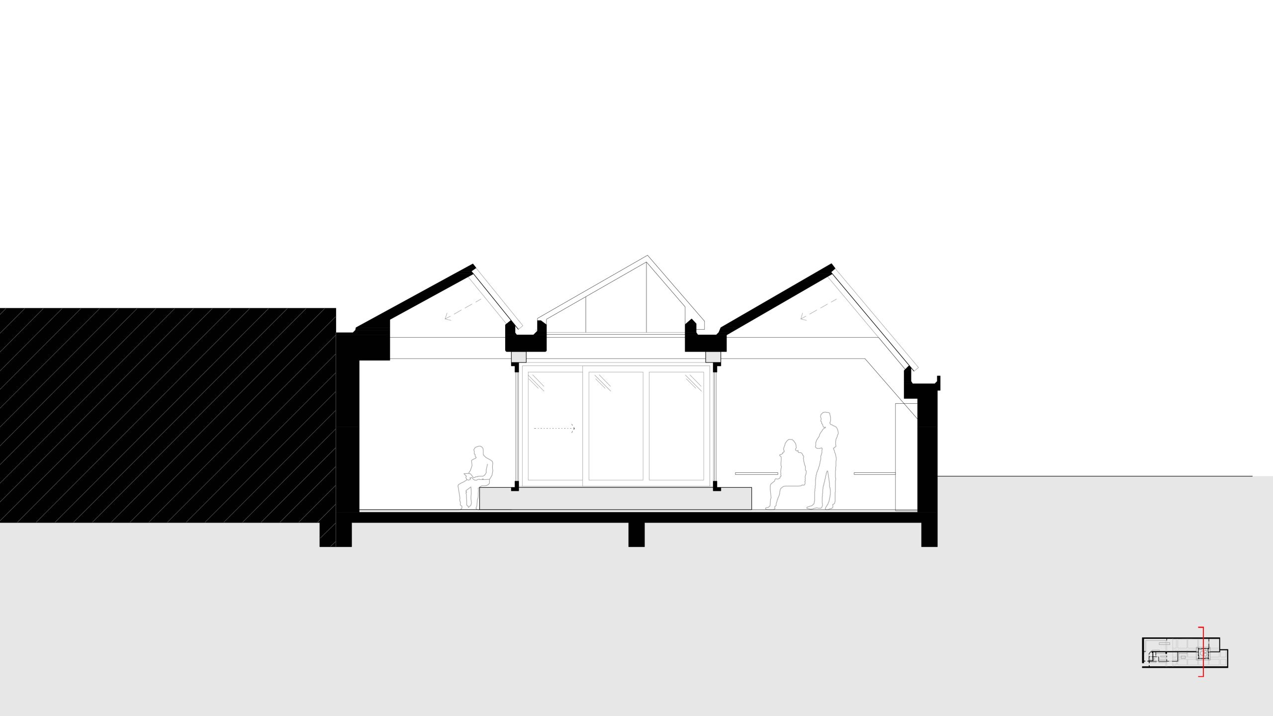 Voor een fijne leefruimte is het belangrijk om een buitenruimte te hebben én verschillende soorten natuurlijk licht. De belangrijkste interventie die we daarom voorstellen, is het creëren van een patio binnen de dakconstructie. De nieuwe buitenruimte die daardoor ontstaat, omhullen we vervolgens met een houten gevel, gemaakt van Oregon pine.
