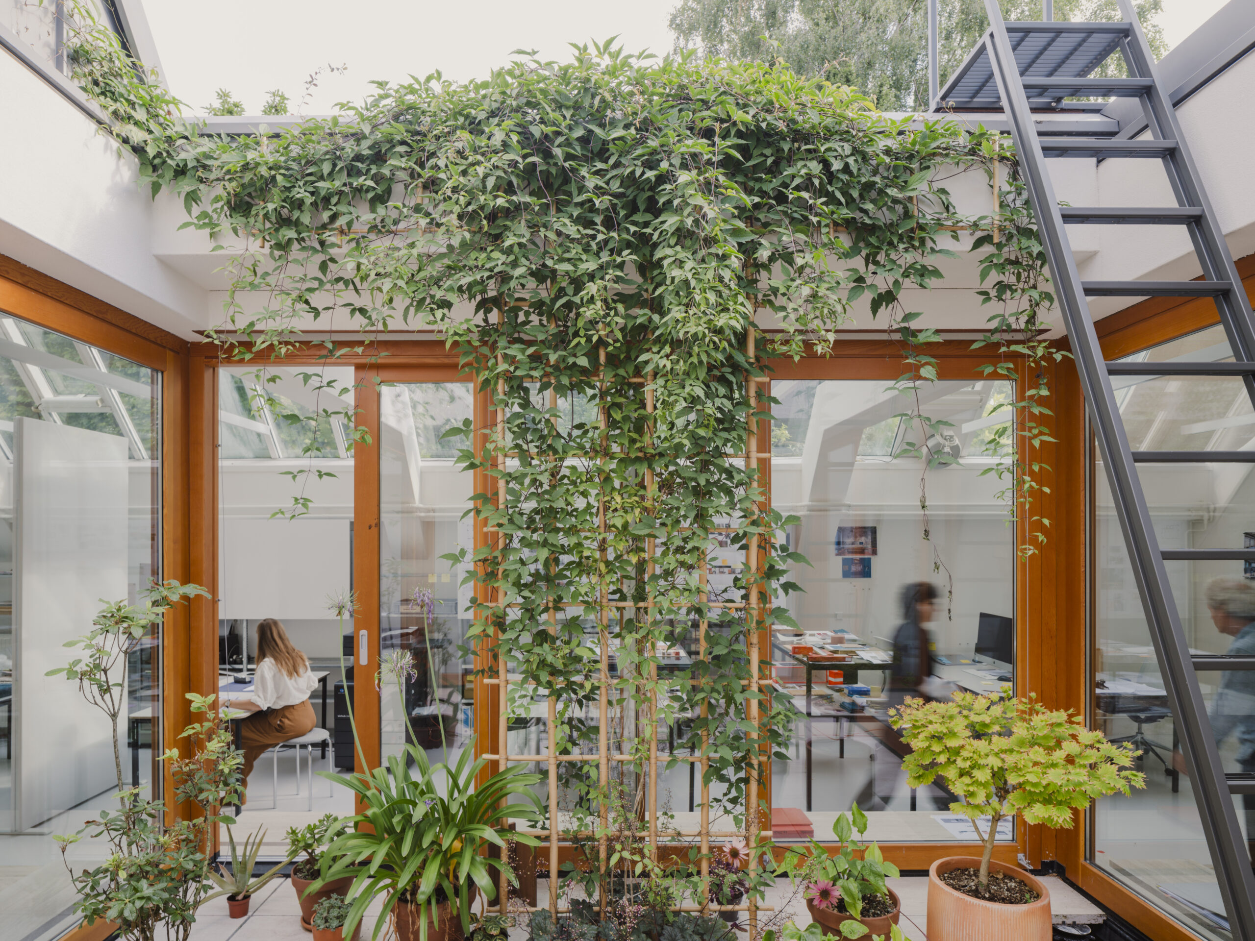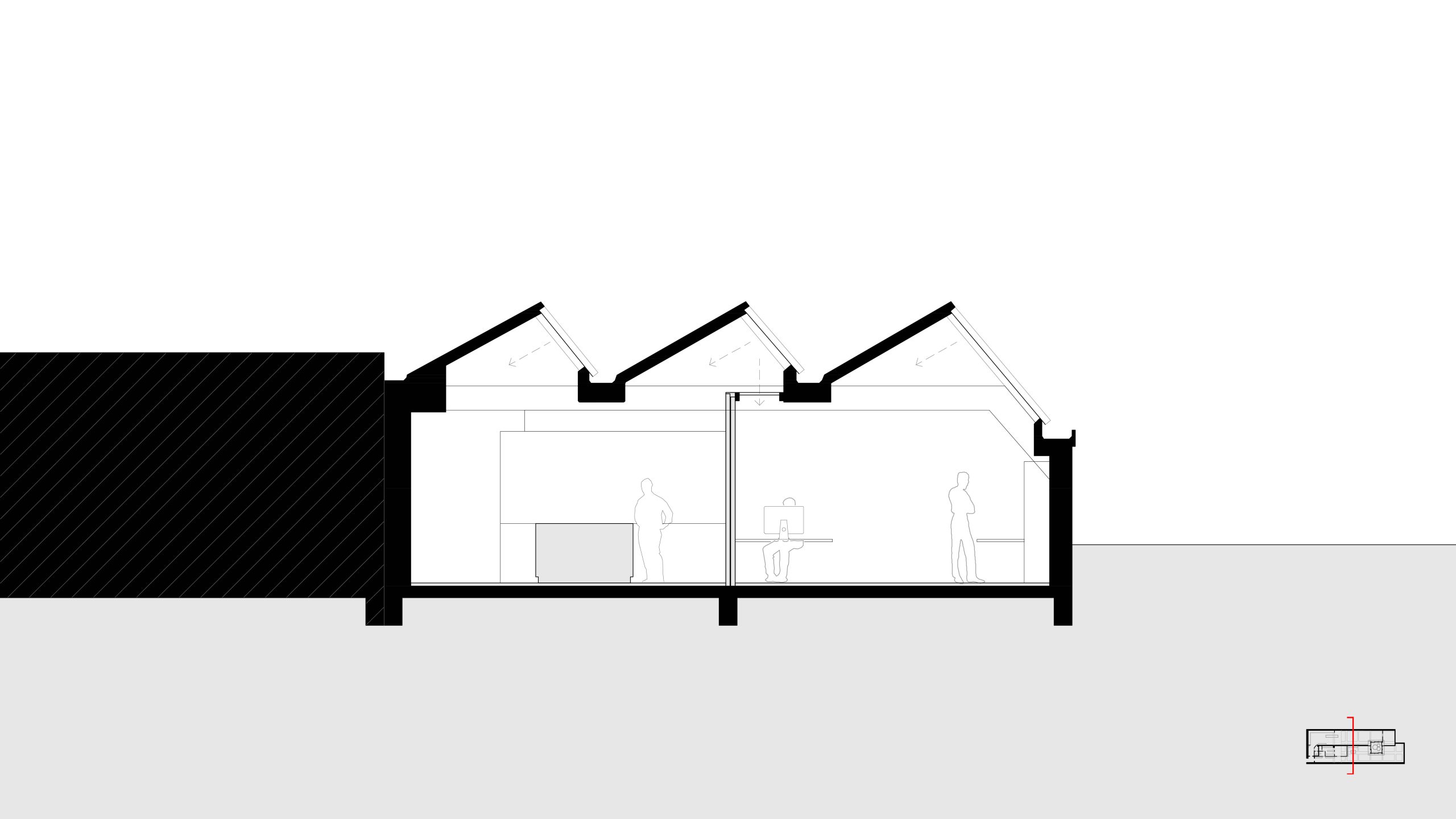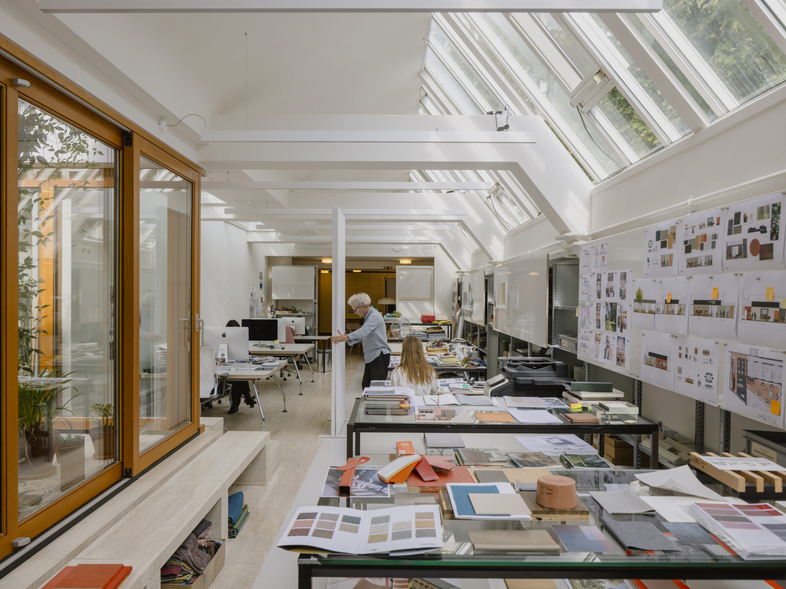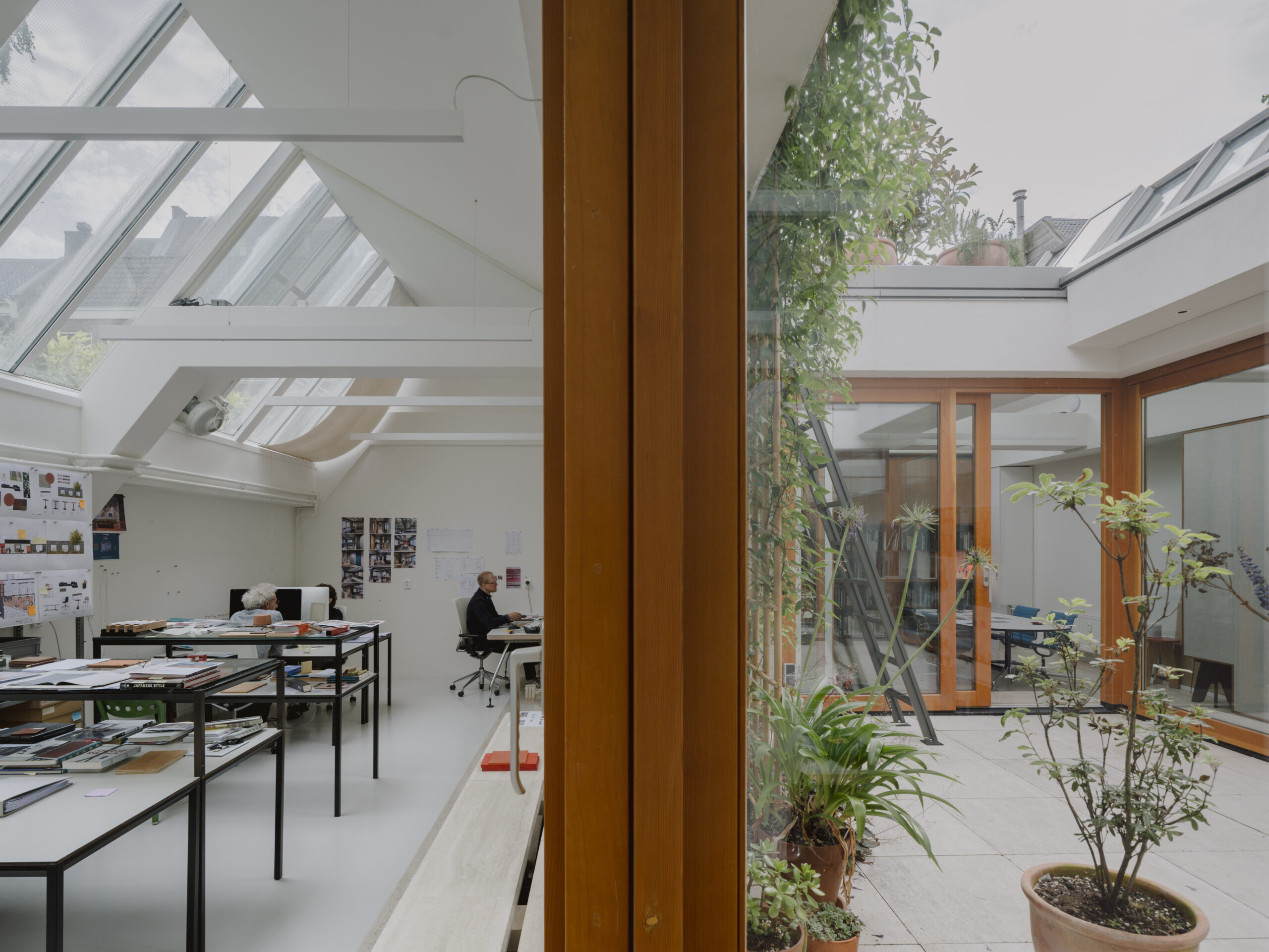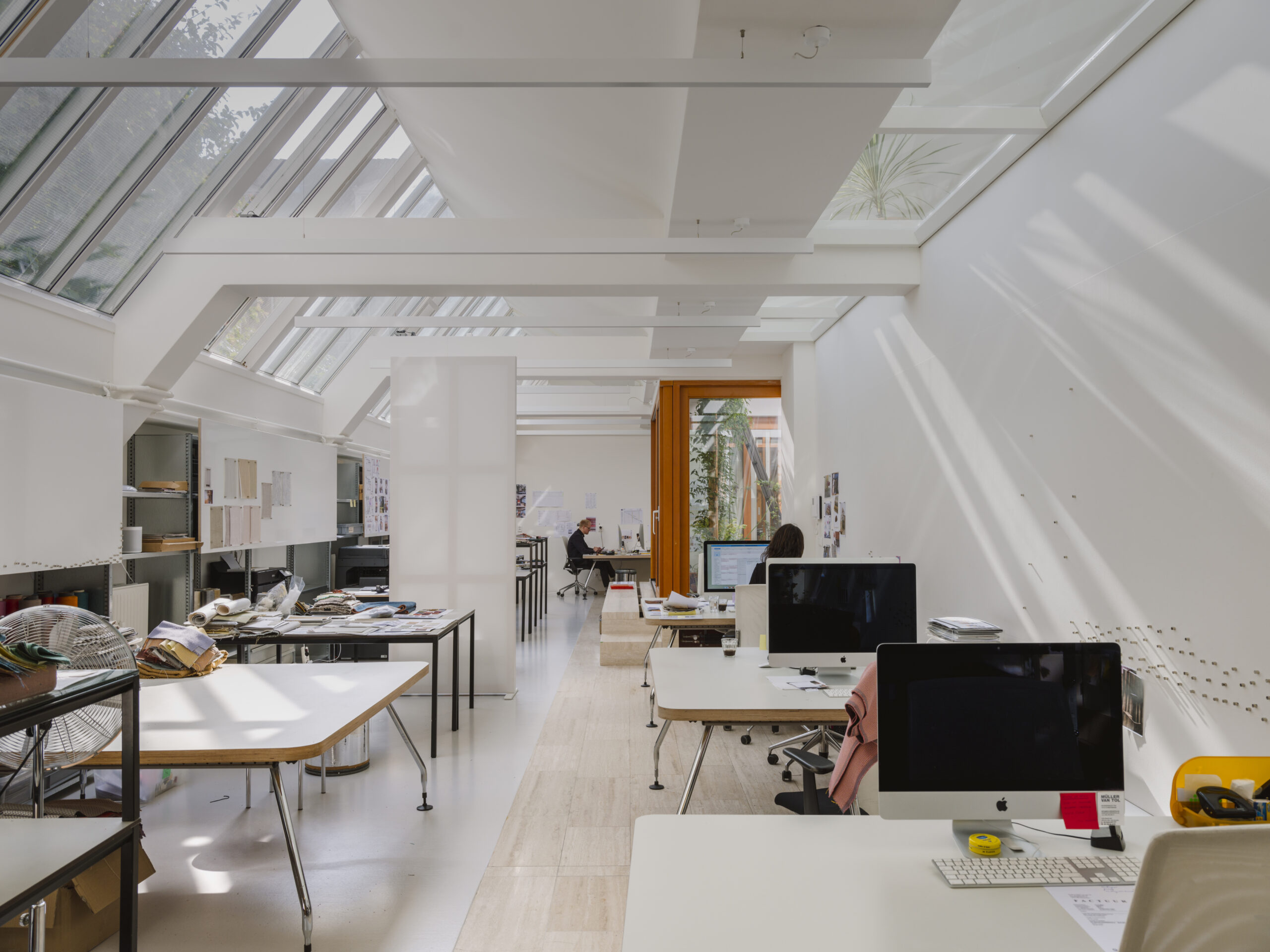 Omdat het ooit als textielfabriek gebouwd is bestaat het dak uit een karakteristiek sheddak op het noorden. Dit geeft prachtig constant licht voor een ontwerpstudio.