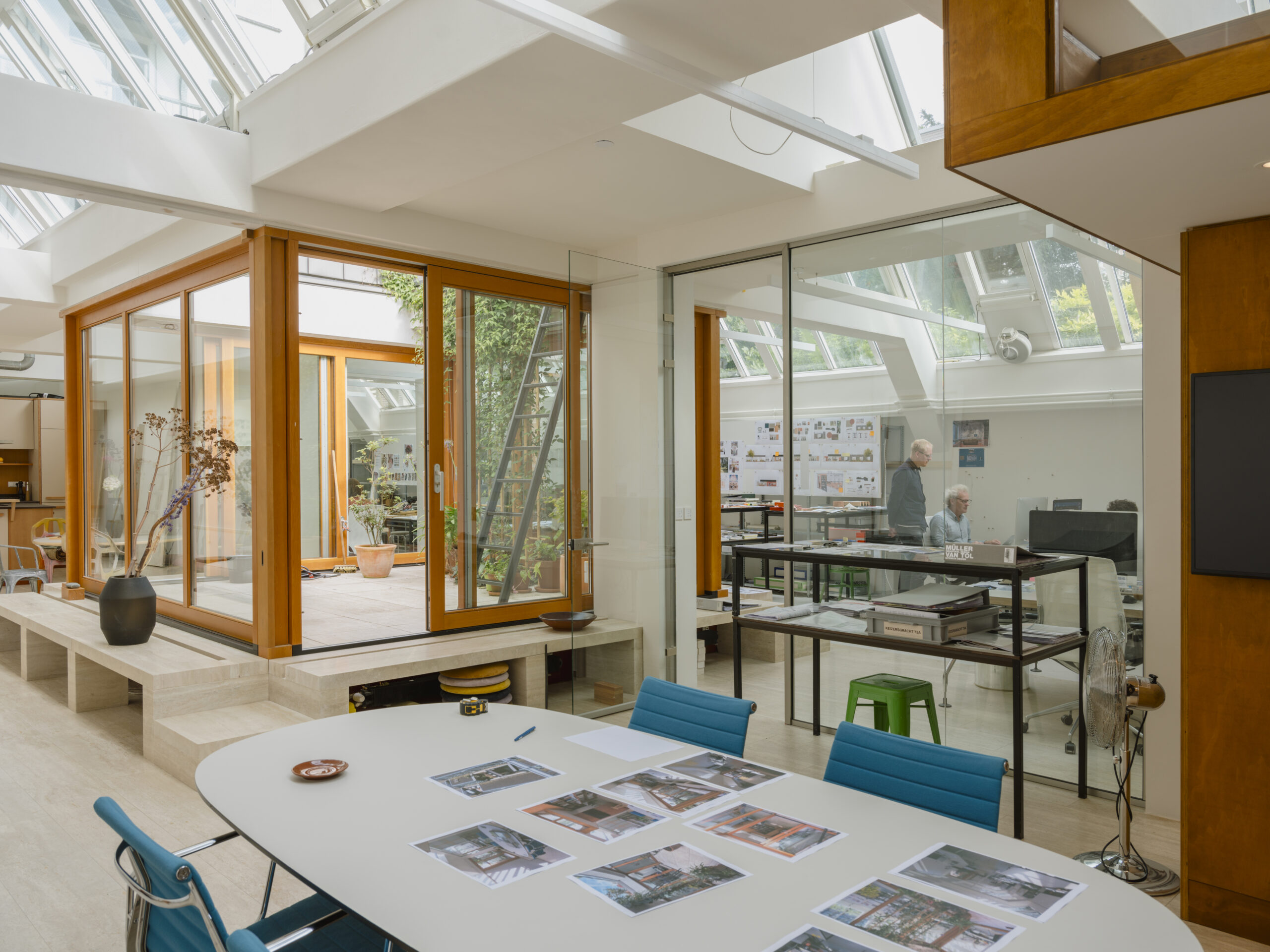 Dit unieke project is een voormalig textielfabriek, gelegen op de historische Grachtengordel in Amsterdam. De ruimte wordt prachtig aangelicht door daklichten op het noorden. Hier zijn we gevraagd om een ontwerpstudio en appartement te realiseren, die samen een nieuwe buitenruimte delen.