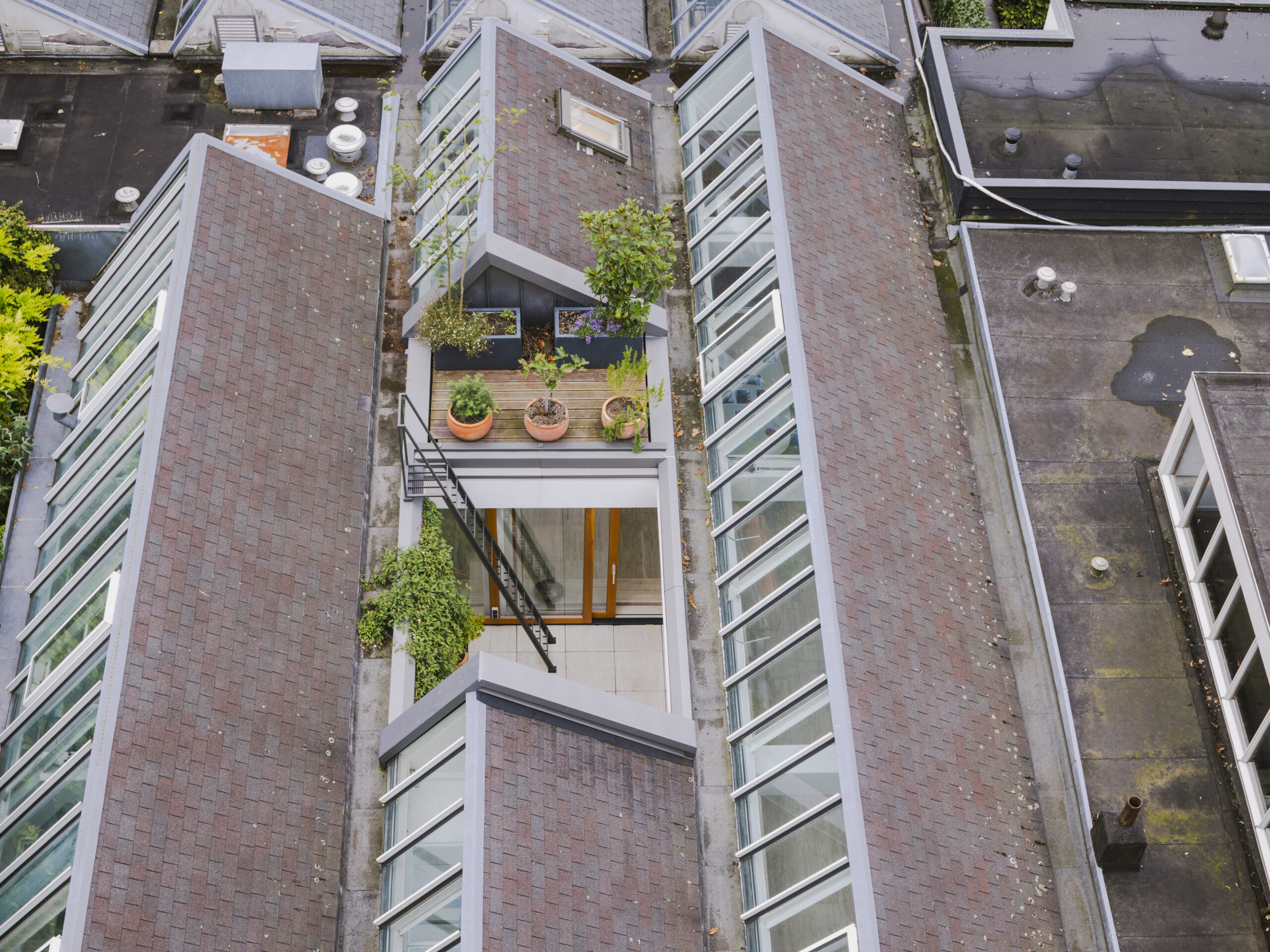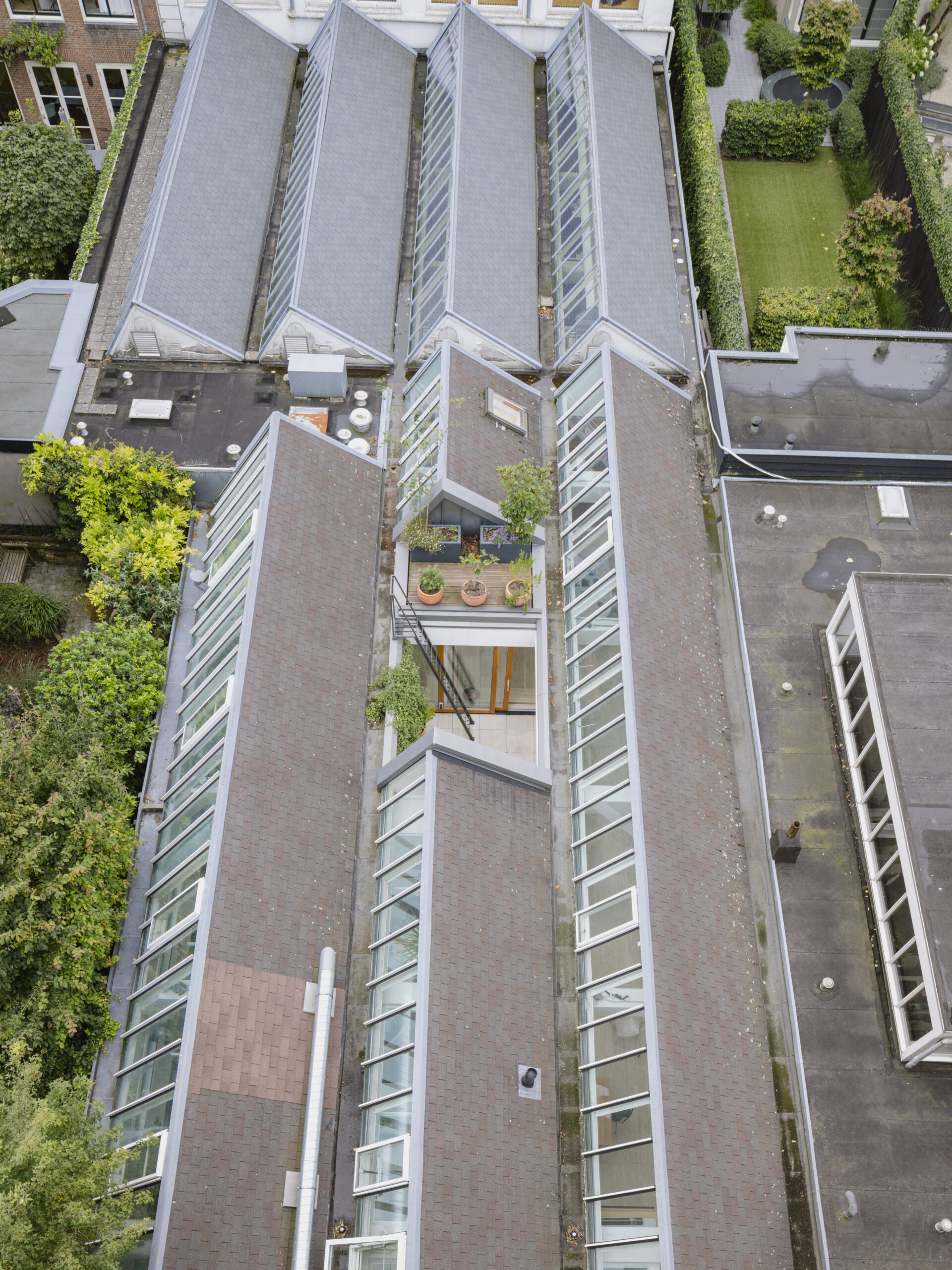 Deze patio biedt een oase van rust in het hart van de stad. Bovendien is er via de patio toegang tot een dakterras, waar planten kunnen gedijen en bewoners kunnen genieten van een panoramisch uitzicht op de historische binnentuinen van de Keizersgracht.