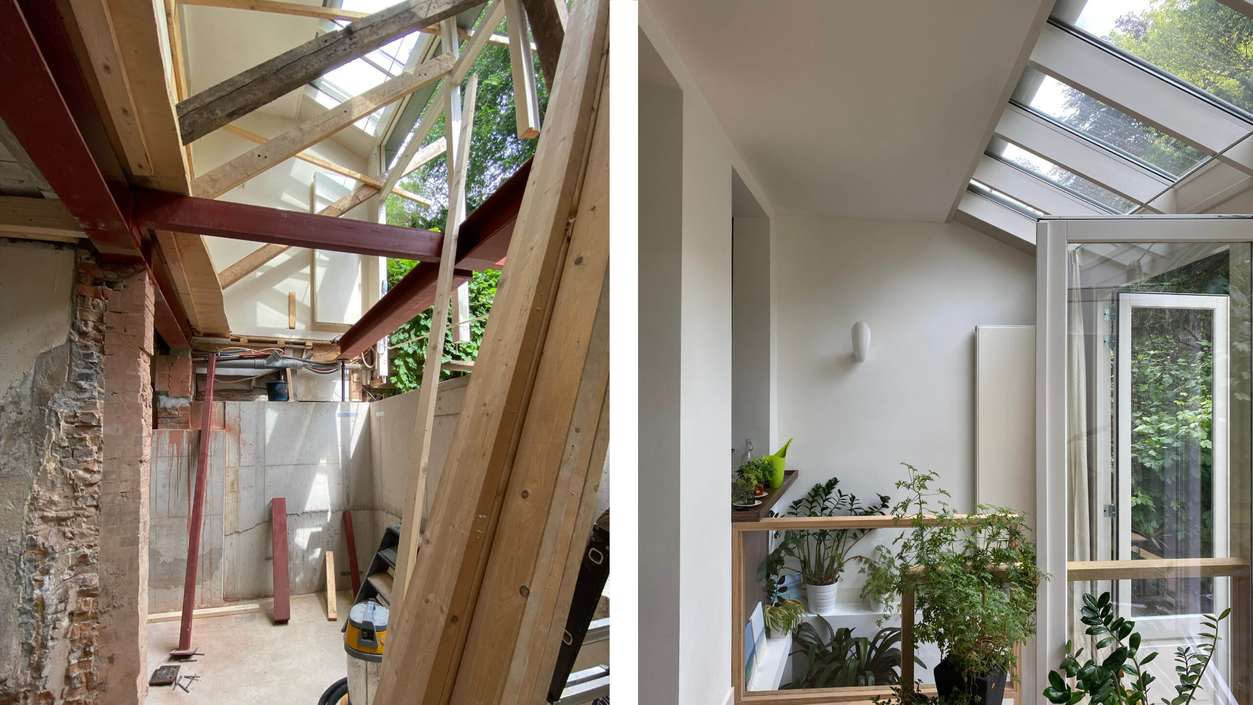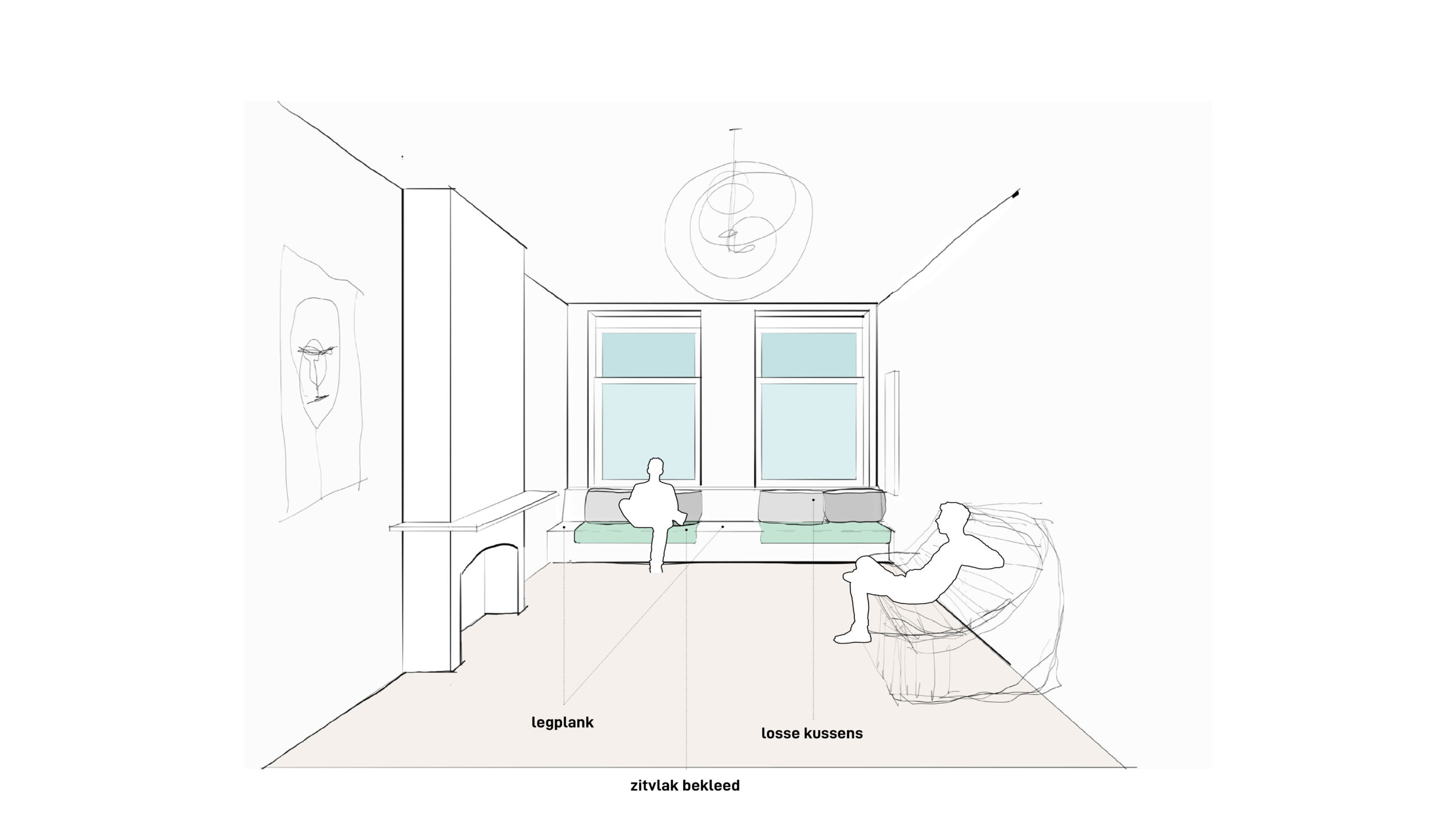 Op de eerste verdieping worden de ruime en lichte kamers ingericht als atelier, werkkamer en speelkamer voor de kinderen. Hier kunnen de bewoners in alle rust werken, terwijl de ruimte ook de mogelijkheid biedt voor de kinderen om een ‘eigen plekje’ te hebben naarmate ze ouder worden. Zo is het huis optimaal ingericht voor de toekomst van dit gezin.