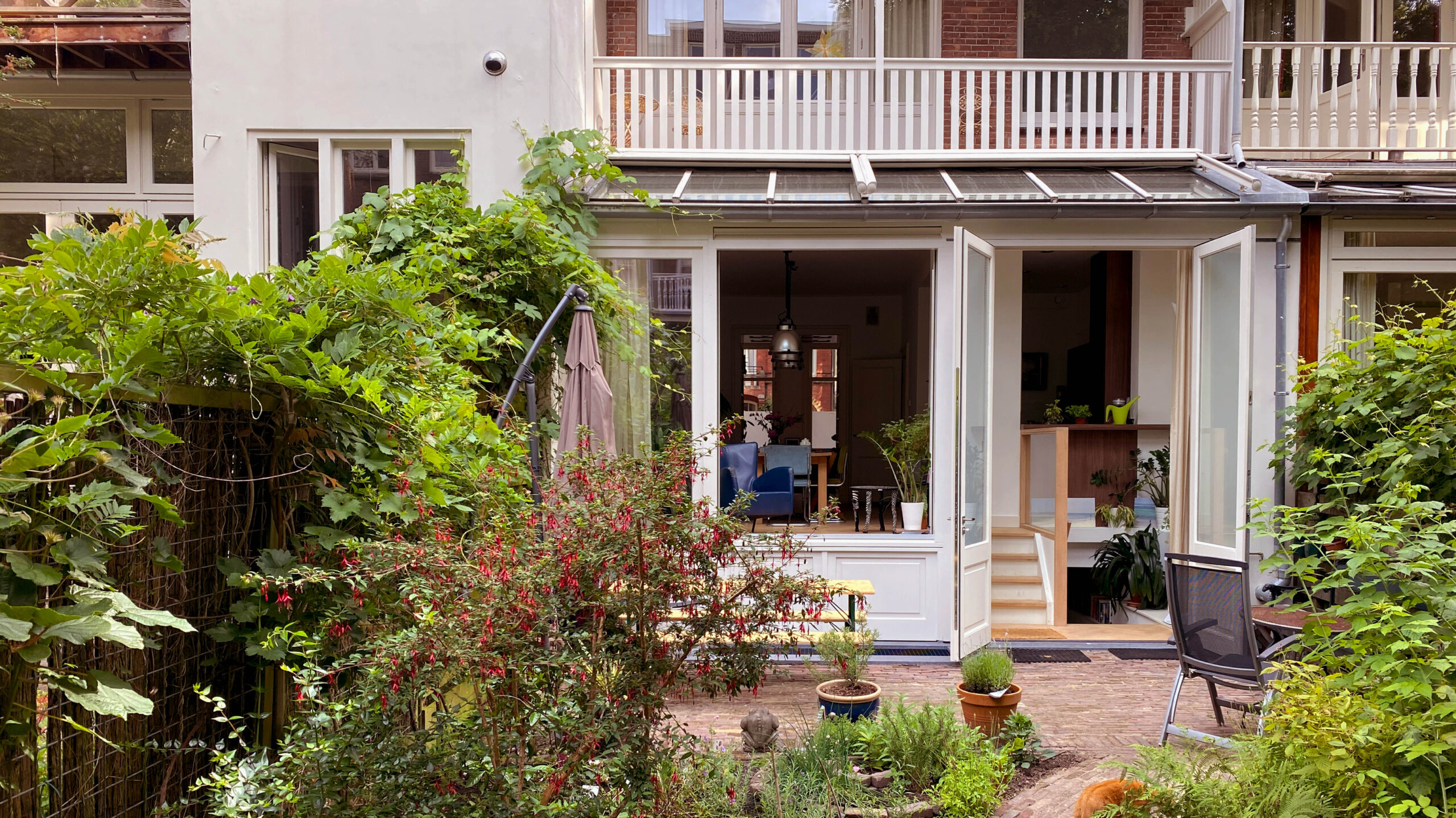 De slaapvertrekken verhuizen van de eerste verdieping naar het souterrain en worden voorzien van een extra badkamer en waskamer. Het souterrain wordt verbonden met de eerste verdieping via een trap aan de tuinzijde, waardoor de connectie met buiten wordt vergroot. De serre wordt opnieuw gebouwd met karakteristieke houten kozijnen en royale deuren, die uitzicht bieden op de weelderige tuin.